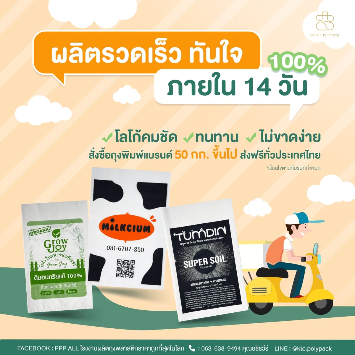 พิมพ์ลาย โลโก้สกรีนแบรนด์ตามออเดอร์ของลูกค้า สามารถเลือกสี ขนาด ความหนาของถุงที่ต้องการได้