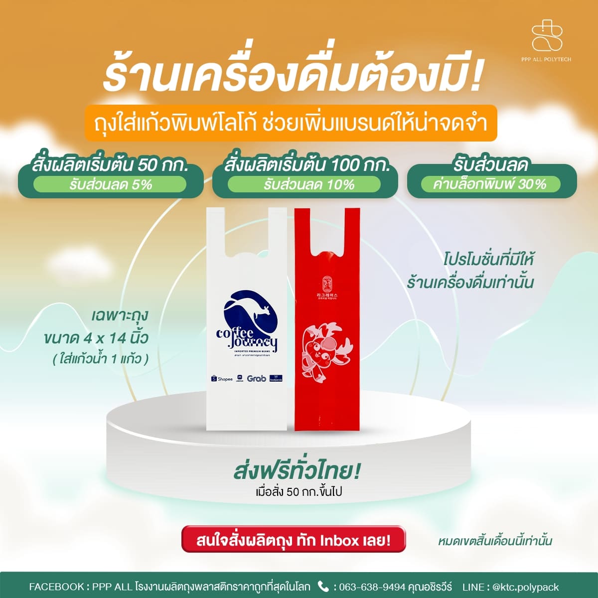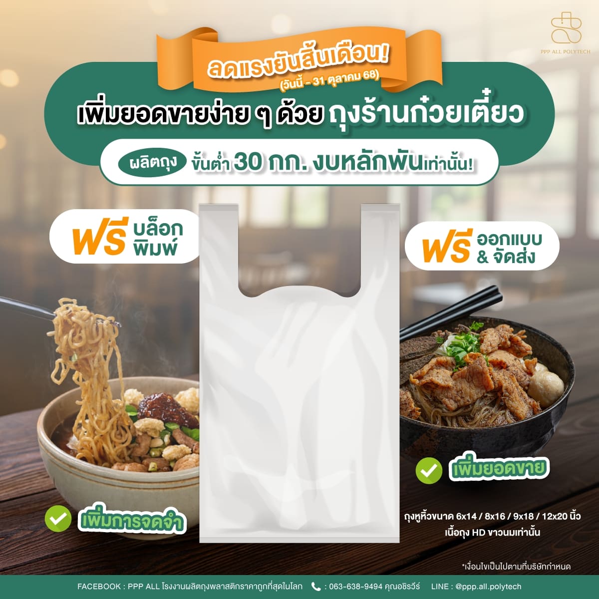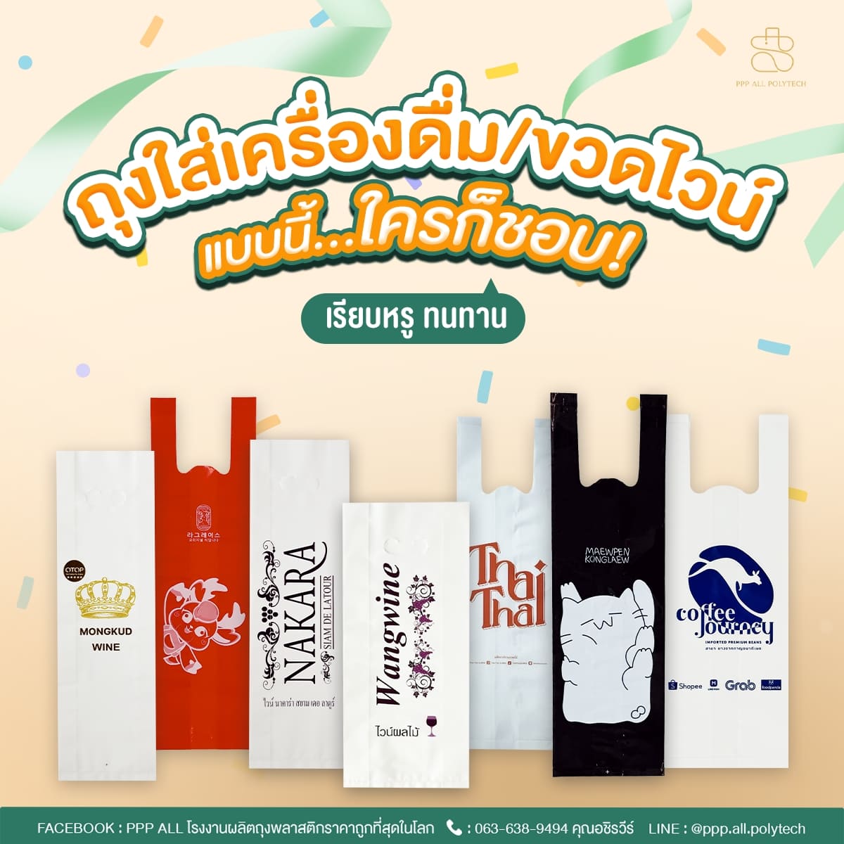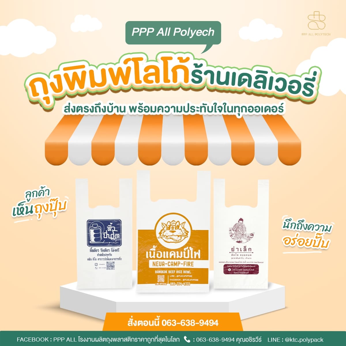 มีโลโก้แบรนด์ รับสั่งทำถุงพลาสติกร้านอาหาร ภัตตาคาร ถุงใส่อาหารถุงร้อน-ถุงเย็น ถุงใส่ขนม-ถุงแก้ว ผลิตถุงหูหิ้วร้านอาหาร ถุงหูหิ้วร้านขนม มีบริการออกแบบพิมพ์สกรีนลาย-สกรีนโลโก้และข้อความบนถุง ผลิตถุงพลาสติกสำหรับคลินิก ถุงพลาสติกหูหิ้วร้านยา ถุงหูหิ้วใส่ยา-เวชภัณฑ์ของโรงพยาบาล ถุงหูหิ้วใส่ของร้านค้า ผลิตถุงดินปลูกต้นไม้-ถุงปุ๋ย พร้อมงานพิมพ์สกรีน